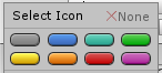 无论是为游戏对象还是脚本分配图标,弹出的 Select Icon 菜单都是相同的: