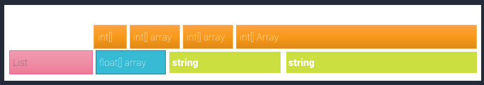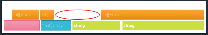 在上图中,白框表示分配给托管堆的内存量,而其中的彩色框表示存储在托管堆的内存空间中的数据值。当需要更多值时,将从托管堆中分配更多空间。