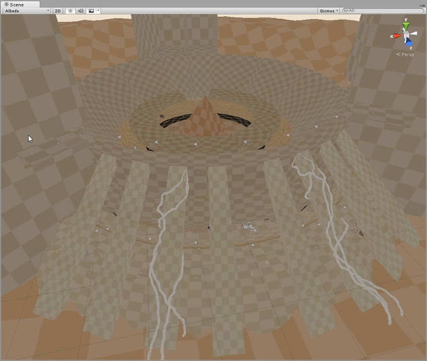 此选项显示计算 GI 时使用的反照率。反照率是根据材质信息生成的,可以通过添加自定义 Meta pass 来完全自定义。方格覆盖层可显示传递给 Enlighten 的反照率纹理的分辨率。