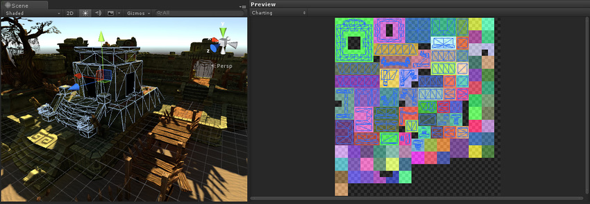 由于重新打包可确保图表周围的半像素边界,因此 UV 取决于实例的比例和光照贴图分辨率。如果放大 UV 以获得更高分辨率的光照贴图,则无法保证此半像素边界。UV 单独打包,并会考虑实例的比例和分辨率。因此,实时 UV 与每个实例有关。请注意,如果 1000 个对象具有相同比例和分辨率,则这些对象共享 UV。
