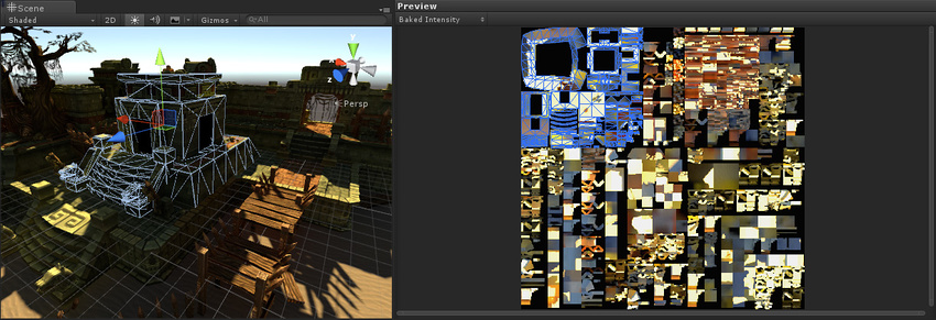 必须注意,即使勾选 __Preserve UVs__,也无法使预计算实时 GI 获得与烘焙 GI 相同的 UV。