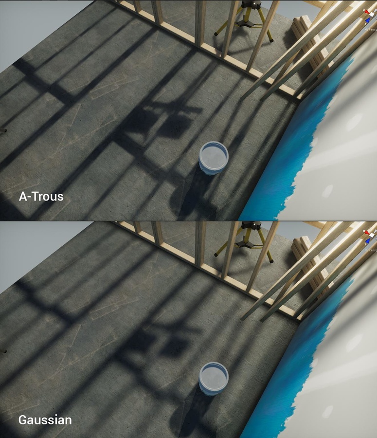 滤波可以模糊噪点效果。渐进光照贴图提供了两种不同类型的滤波:__Gaussian__ 和 A-Trous。启用 Advanced 设置后,可单独对 DirectIndirect __ 和 Ambient Occlusion__ 应用这些过滤器。有关更多信息,请参阅有关渐进光照贴图的文档。