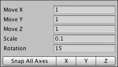 使用__移动__工具或__变换__工具拖动任何辅助图标轴时,按住 Control 键(Mac 上为 Command 键)可对齐到 Snap Settings__(菜单:__Edit > Snap Settings…)中定义的增量