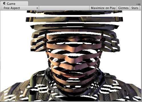 下面的着色器通过丢弃几乎水平的环形中的像素来对游戏对象“切片”。为实现此效果,它使用了基于像素世界位置的 Cg/HLSL 函数 clip()。我们将使用内置的表面着色器变量 worldPos。