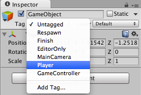 在 Inspector 中,游戏对象的名称下面会显示 Tag 和 Layer 下拉菜单。