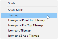 选择 Tilemap 选项后,在场景中将会创建一个新的 Grid 游戏对象,其中包含 Tilemap 子游戏对象。Grid 游戏对象决定了其子 Tilemap 的布局。