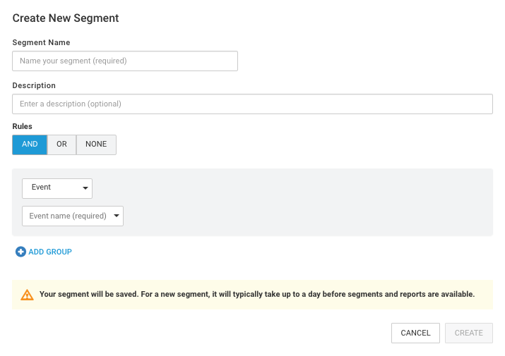 规则本身可以源自基于会话的核心 Analytics 事件(类似于标准细分段),也可以基于标准事件和自定义事件。