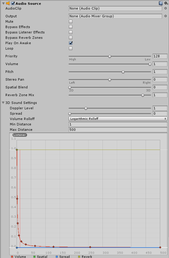 Audio Clip 上的其余属性都是值属性。可以在 Inspector 中直接调整这些属性。Audio Clip 上的值属性都是开关、数值、下拉字段,但值属性也可以是文本字符串、颜色、曲线和其他类型。如需了解与此相关的更多信息以及如何编辑值属性,请参阅关于编辑值属性的页面。