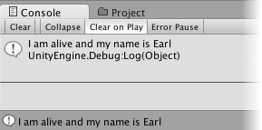 Debug.Log("I am alive and my name is " + myName);