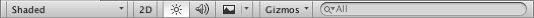 在 Render Mode 菜单的右侧有三个按钮,用于打开或关闭 Scene 视图的某些选项: