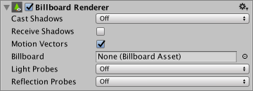 Motion Vectors 选中此框允许将共告牌的运动矢量渲染到摄像机运动矢量纹理中。请参阅脚本 API 中的 Renderer.motionVectors 以了解更多信息。