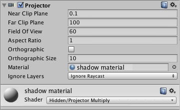 如果要创建简单的阴影效果,只需将 StandardAssets > Blob-Shadow > Blob shadow projector __预制件__拖到场景中即可。您可以修改材质以使用不同的模糊阴影纹理。