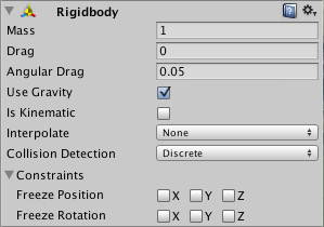 | Angular Drag | 根据扭矩旋转对象时影响对象的空气阻力大小。0 表示没有空气阻力。请注意,如果直接将对象的 Angular Drag 属性设置为无穷大,无法使对象停止旋转。 |