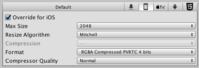 在为不同平台进行构建时,您需要考虑适合目标平台的纹理分辨率、大小和质量。可以设置默认选项,然后针对特定平台来覆盖默认值。