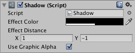 阴影组件为图形组件(如文本或图像)添加简单的轮廓效果。必须与图形组件位于同一游戏对象上。