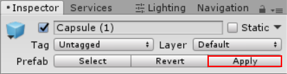 覆盖原始预制件:单击 Inspector 窗口中的 Tree 游戏对象上的 Apply 按钮: