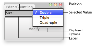 class EditorGUIIntPopup : EditorWindow { int selectedSize = 1; string[] names = { "Double", "Triple", "Quadruple" }; int[] sizes = { 2, 3, 4 };