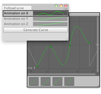 public class FollowCurve : EditorWindow { AnimationCurve curveX = AnimationCurve.Linear(0, 0, 10, 10); AnimationCurve curveY = AnimationCurve.Linear(0, 0, 10, 10); AnimationCurve curveZ = AnimationCurve.Linear(0, 0, 10, 10);