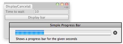 if (progress < secs) { if (EditorUtility.DisplayCancelableProgressBar( "Simple Progress Bar", "Shows a progress bar for the given seconds", (float)(progress / secs))) { Debug.Log("Progress bar canceled by the user"); startVal = 0; } } else EditorUtility.ClearProgressBar(); } else secs = EditorGUILayout.IntField("Time to wait:", secs); }