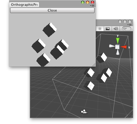 void OnGUI() { if (GUILayout.Button("Close")) { camera.orthographic = false; this.Close(); } if (renderTexture != null) { float w = this.position.width; float h = this.position.height; GUI.DrawTexture(new Rect(0.0f, 50.0f, w, h), renderTexture); } }