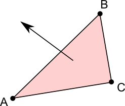 平面还可以通过位于平面中的三角形的三个顶点来定义。在这种情况下,如果在您看着正面朝上的三角形时,角点呈顺时针顺序,则法线矢量指向您。